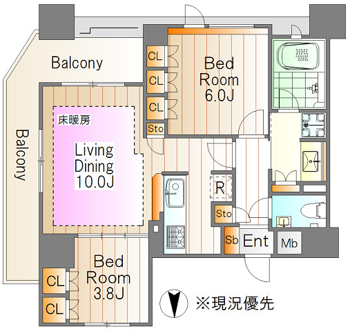 | 間取内容 | 洋室6帖・洋室3.8帖・LDK13.2帖 |